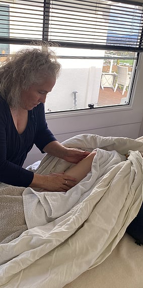 A soothing and meditative massage method on the feet to stimulate the Lymph system to pump and excrete toxic build up.